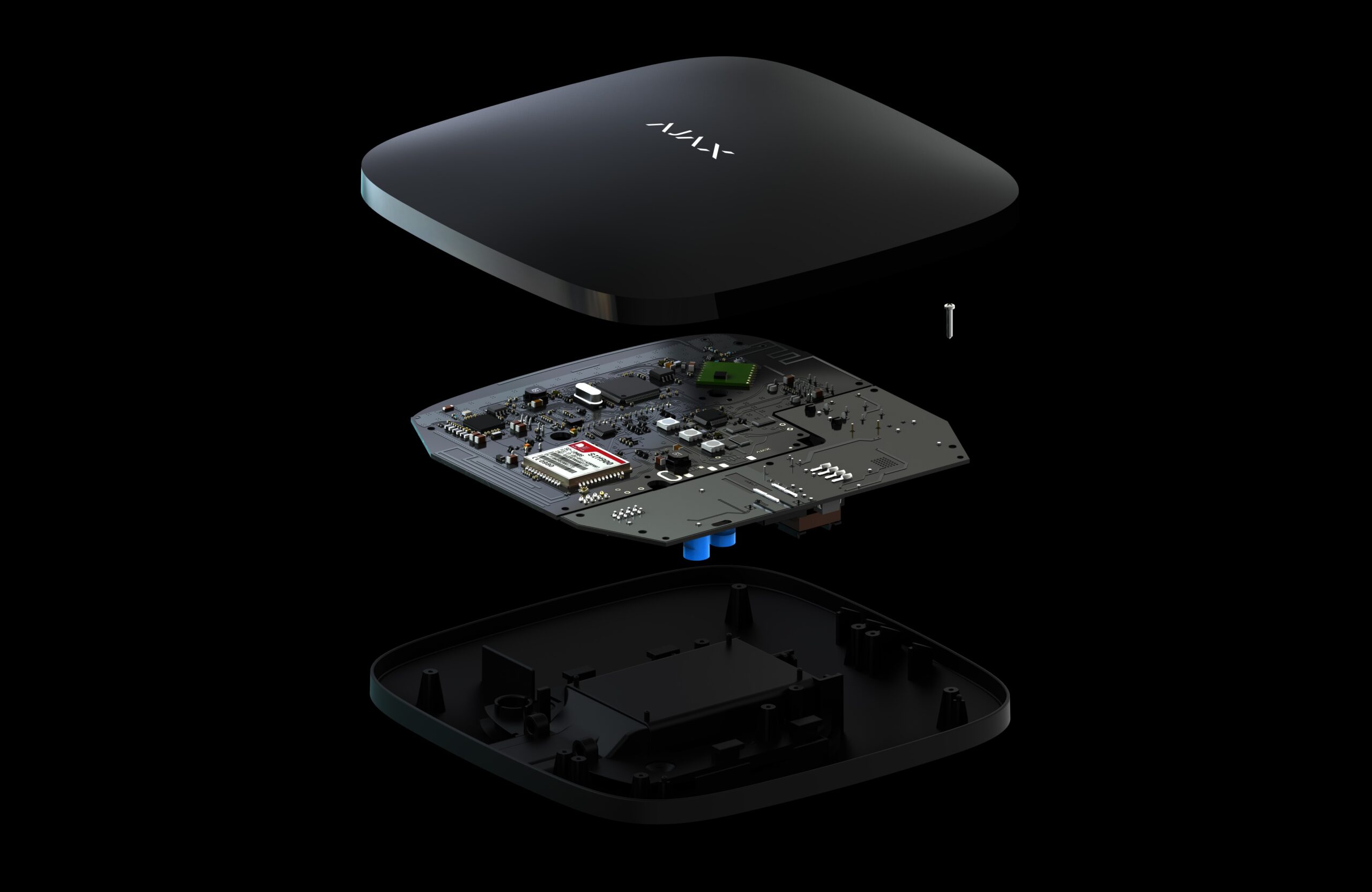 The hub monitors the security system operation by communicating with connected devices via the Jeweller encrypted protocol. The communication range is up to 2000 m without obstacles (for example, walls, doors, inter-floor constructions). If the detector is triggered, the system raises the alarm in 0.15 seconds, activates the sirens, and notifies the central monitoring station of the security organization and the users.